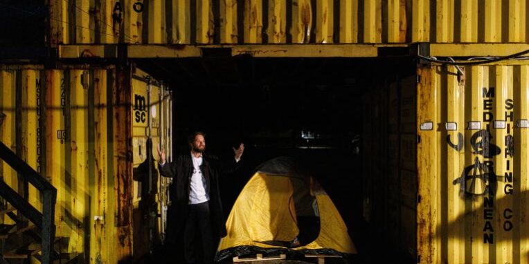 In development since 2023, the play is by dramaturg Ula Talija Pollak and director Bor Ravbar, who met while studying at the Academy of Theatre, Radio, Film and Television of the University of Ljubljana, first collaborating when Ravbar was a third year and Pollak in her second year. “I was looking for someone who would be compatible with my ideological view of making theatre,” recalls Ravbar about his partnership with Pollak. Having made a show together at the Academy, they turned their attention to the housing crisis in Slovenia, a theme which they, like many young people, particularly identified with.