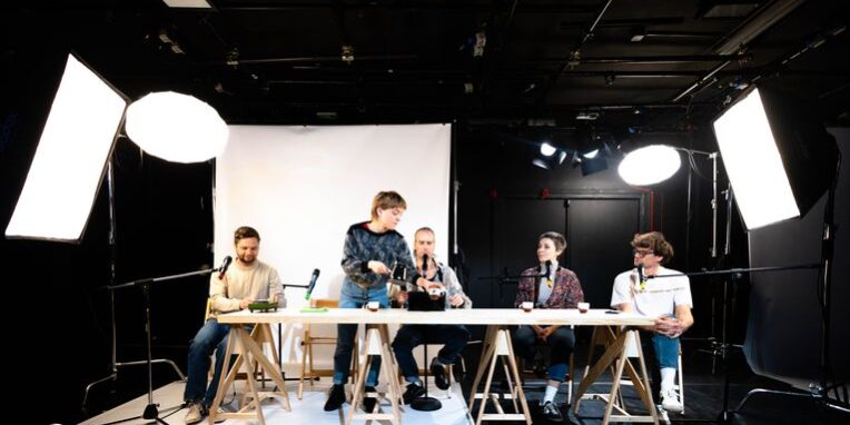 Set designer Dorian Šilec Petek dresses the stage as a photographic studio with screens, lights, and photographic equipment. The camera plays a supporting role throughout, sometimes recording and projecting the actors onto the screen, other times capturing the space, or just some details. This highlights how society, through the media, perceives only fragments of a larger mosaic, never the whole picture. Moreover, this perspective is always limited and framed from a specific angle. Thus, the play presents seven faces of the same story – none more true than the other, yet all equally bold.