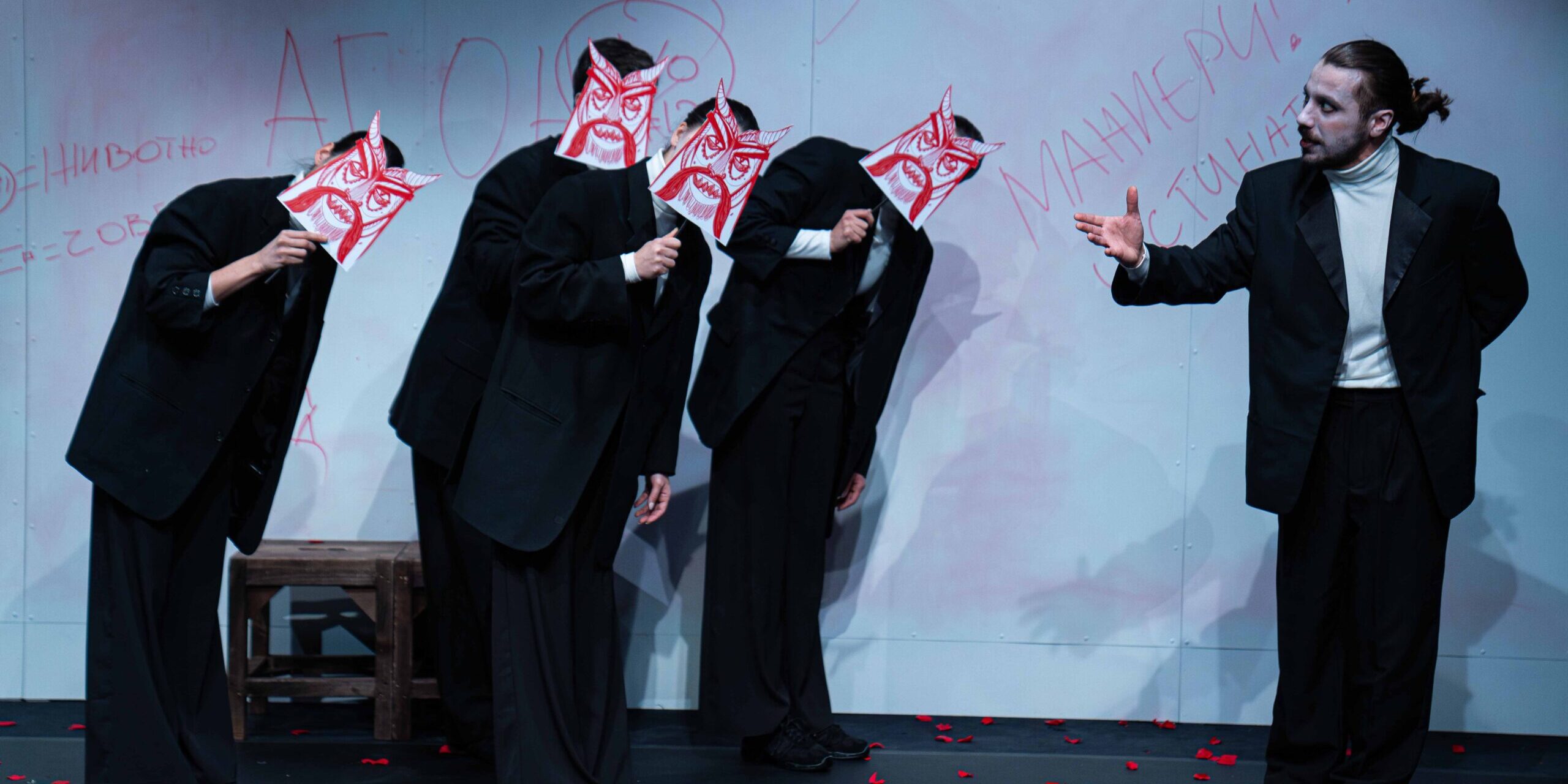 Following the principle of “theatre within theatre,” the actors, stepping into different roles, bring the emotional weight of current events closer to the audience and skilfully juggle humour, irony, and minimalist choreographic movements by choreographer Kalina Georgieva. Movement is not just a backdrop but an independent language that reinforces the text and creates emotional pulses in the rhythm of the production.