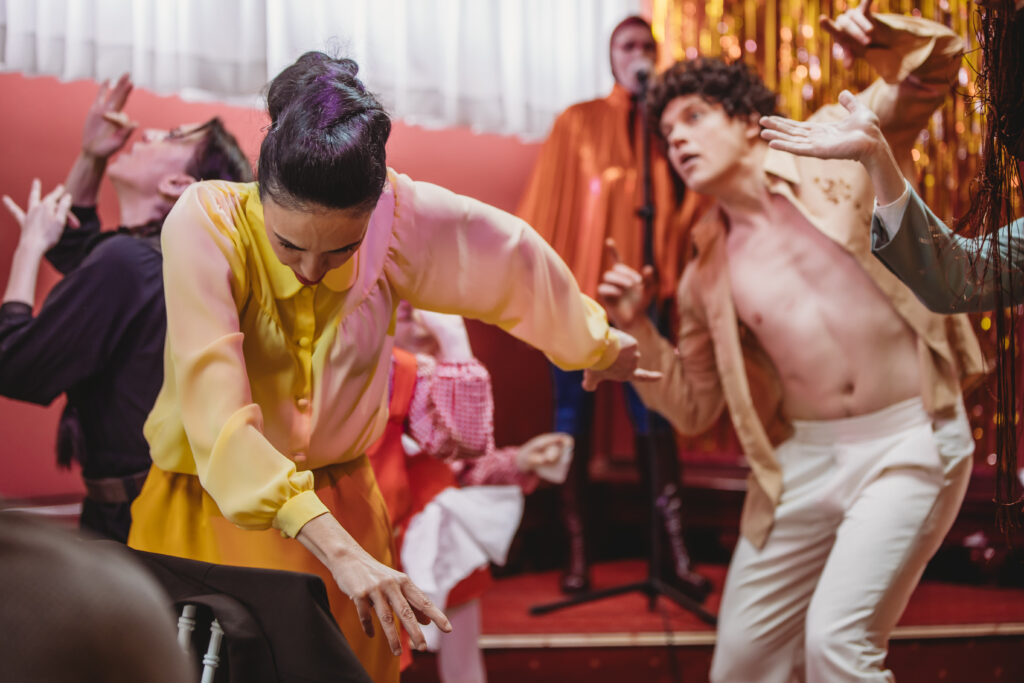 This show is composed of two strands that take place at the same time in different parts of the theatre, only merging in the last act, when the actors and the audience from Paula’s wedding join those at Brigitte’s wedding. As both weddings are happening at the same time, we only have access to one – but this just makes the performance more exciting, as we feel we are part of something bigger than us. Since I attended Brigitte’s wedding, I will focus on that in this review.