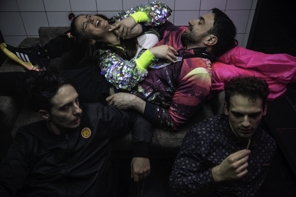 God is a DJ, and his name is Kosta. He is enthroned high above us, on an altar of metal and neon lights, tuning the techno beats on his mixing console. Just before he raises his voice to preach to the crowd, a staggering flash of light strikes the disco ball above his head, leaving behind a nimbus-like crown to honour his holiness. Then, with a tone vast and alluring, he whispers into the mic: “I look at those lost and sweaty faces. And I see people who are finding themselves in the hope of receiving some kind of catharsis. And I like to believe that it is I who brings it to them. That tonight, I am your God.” And so it begins.