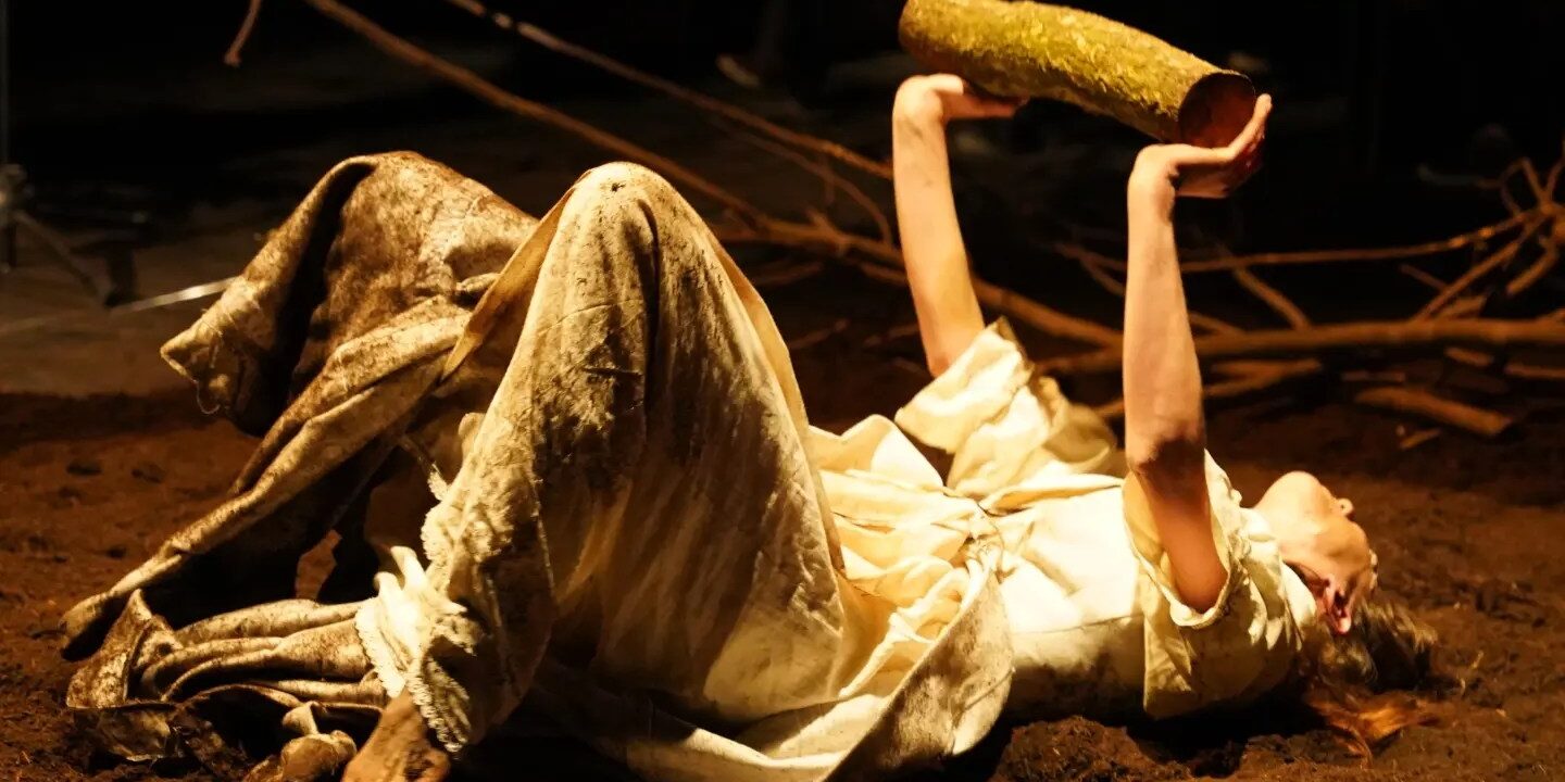 Çela’s performance is presented to a small audience. This material is not easy to hear and a degree of intimacy and trust is needed to share these stories. Scenographer Beqo Nanaj’s set features dry branches, and barbed wires with letters stuck on them, symbolizing the stories that never left the camp. Two women sit facing the audience with a grave between. They are awaiting a third woman. It appears the play can’t start without her, but the audience soon realize they are sitting around the grave of this third character. It’s a shocking beginning, but one that successfully introduces the sensitive themes of forced labour, torture, violence, hunger, disease, sexual abuse, and the loss of children that permeate the play.