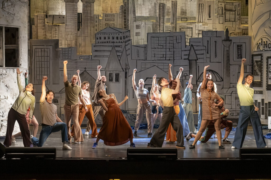 Nevertheless, the musical palette of the production, especially in its first half, demonstrates remarkable stylistic breadth, reflecting both Fazla’s and Rihtman’s versatile artistic backgrounds. The score navigates effortlessly through jazz, pop, and rock, providing ample space for the performers to showcase their diverse talents. Led by Rihtman, the Sarajevo Philharmonic Orchestra impresses with virtuosic precision, anchoring the production in its recurring theme of togetherness and communal spirit. Together with the ensemble on stage, they serve as the driving force behind the production’s central theme of community.
