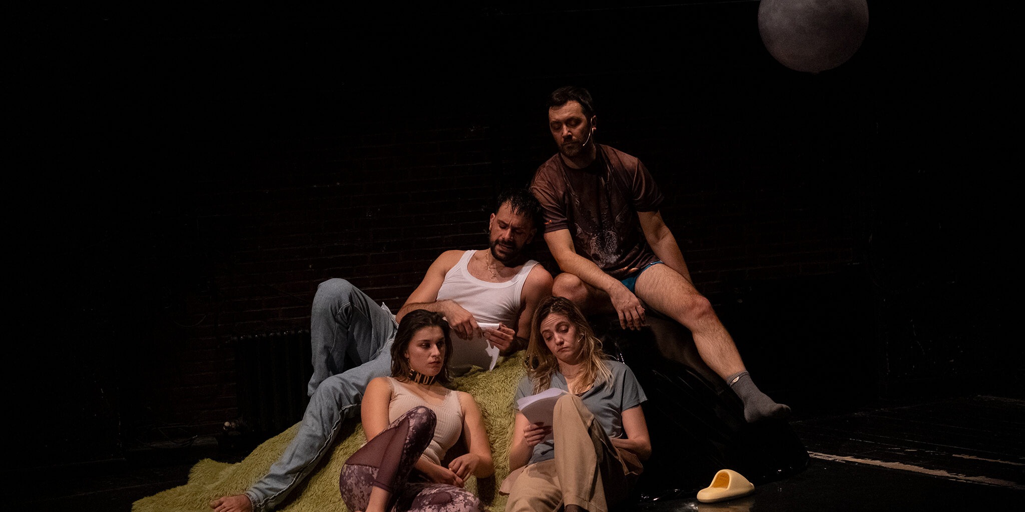 But not all segments of Sparked are so sexually explicit, nor do dance passages always literally represent a real-life act such as sex – the shift in the show’s sensitivity is considerable. There are periods when the performers tenderly dance with each other, particularly in one scene where they dance next to one another, everyone in their own unsynchronized moves, circling around the other’s body but never touching it. Those are also the moments when Đonin’s music transforms from club craziness to an eased-up, meditative tone. And then, there are verbal parts of the show when the Sparked Four recite erotic poetry whose style ranges from passionate to comical, from narrative to abstract. Ana Dubljević has been collecting such poems for years, gathering hundreds but ultimately selecting 40 or so for the performance. Dubljević’s approach to erotic poetry is inextricably linked to and inspired by the Black feminist Audre Lorde who sees such enormous power in deep and non-rational female desire that she thinks that it can endanger the repressive social order.