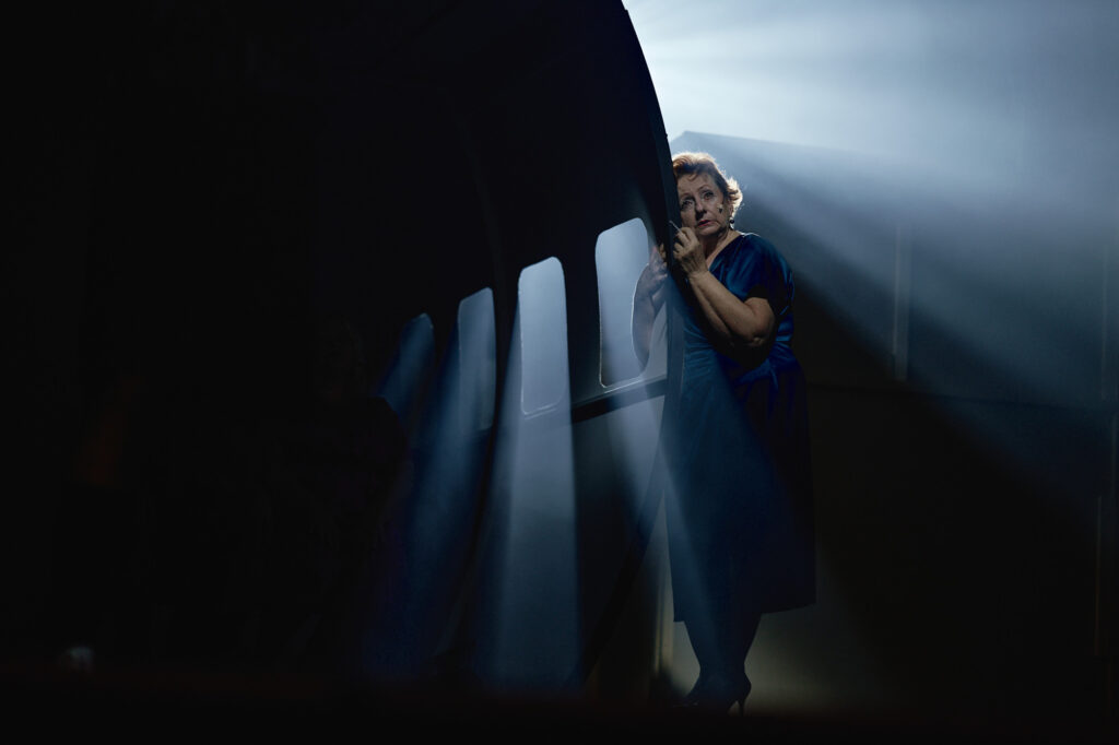 The most visually striking moment comes in the interlude, when Vershinin (a brilliant Gábor Pongó) transforms from a man with a disability into a dictator. At the same time, we hear Umberto Eco’s Fourteen Features of Fascism read in voiceover. Overall, the production abounds in stunning, almost surreal imagery, thanks largely to the outstanding lighting design and the scenography that changes with each act. From the aeroplane cabin where the sisters “fly” to Moscow (a destination they never reach), to the swimming pool marked with the words Your body is a battleground (the famous 1989 artwork by Barbara Kruger that became an iconic feminist and pro-choice statement).
