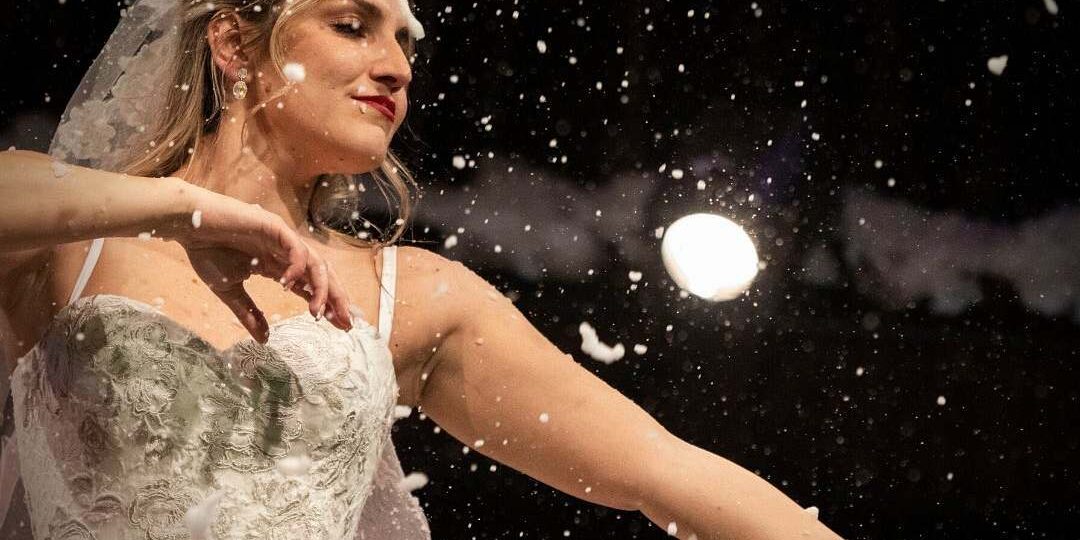 After all the character dynamics and events have unfolded calmly and slowly, like the burning of wood in a chimney, Štivičić’s play reaches its climax. Dressed in a white wedding dress, bride Lucia climbs on the table and dances, spinning, revealing how pragmatism is now the winning way to survive, as her sister storms back to England.